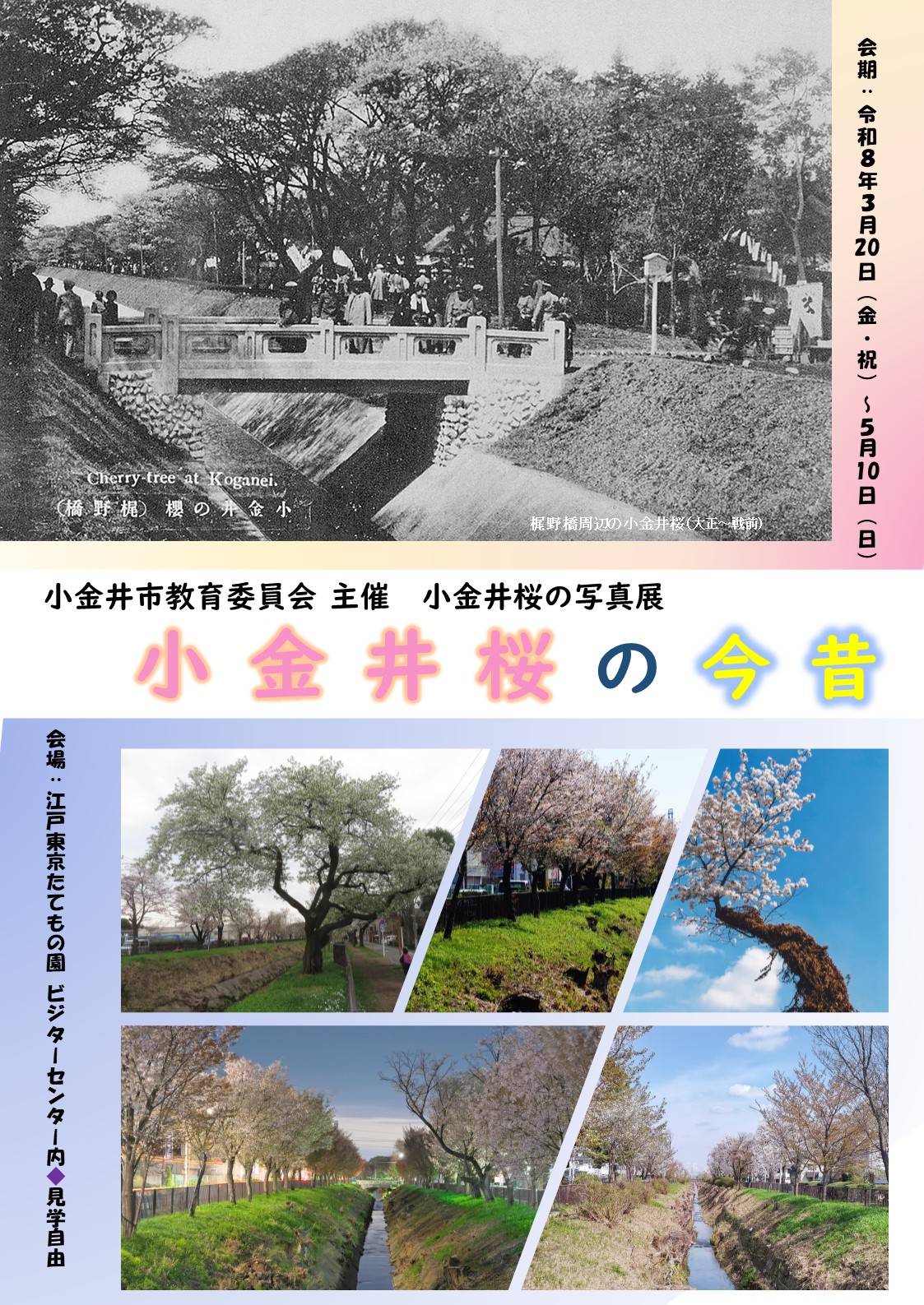 展示では、明治時代や大正時代の貴重な小金井桜の古写真と、現代の小金井桜の写真のコントラストをお楽しみください。